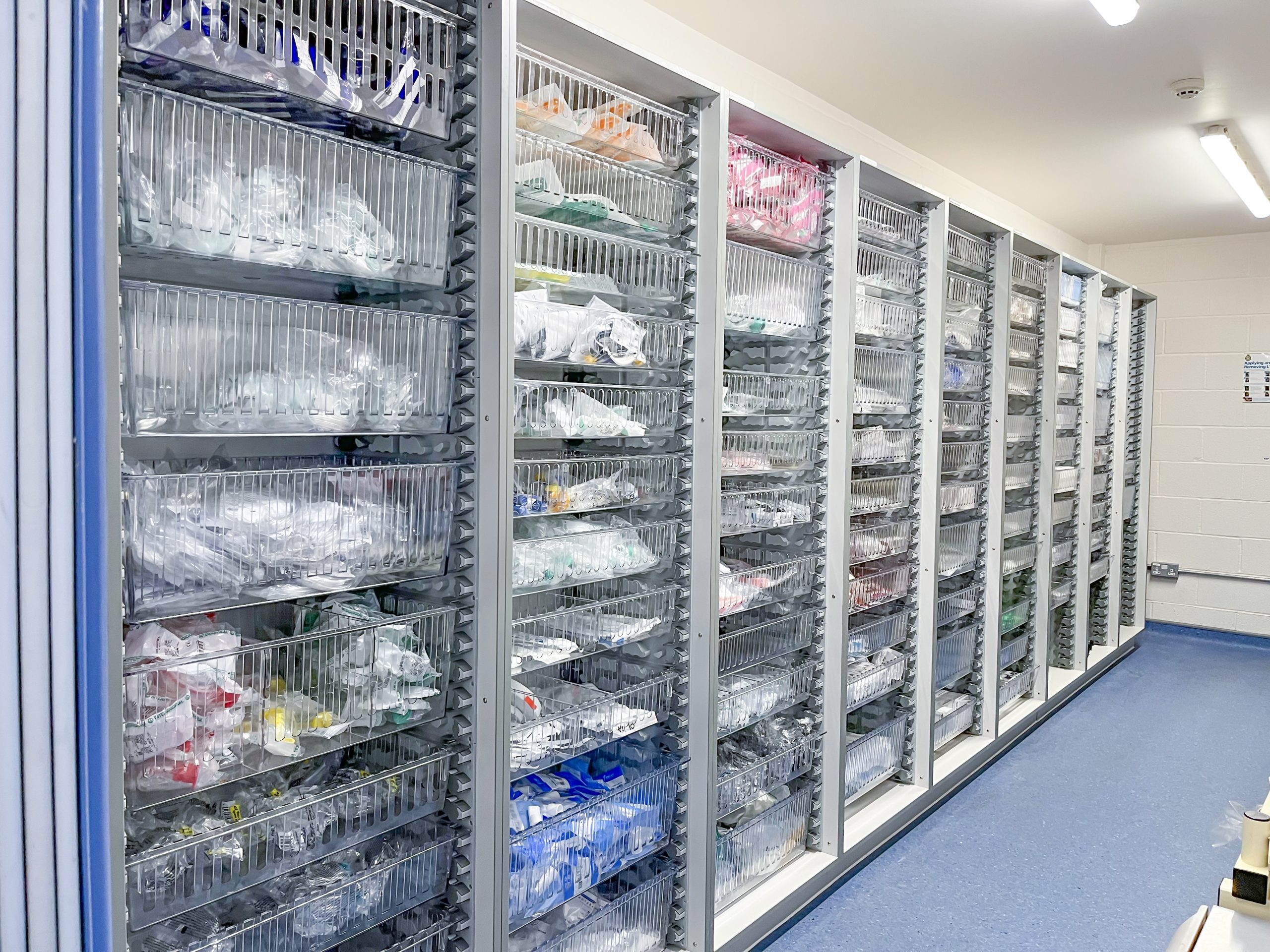 The team at Medstor reviewed the Trust’s needs – to replace the shelving and boxes currently being used for storage and generally improve organisation – and developed a solution built around the HTM 71 cabinets Medstor is known for throughout the healthcare sector.